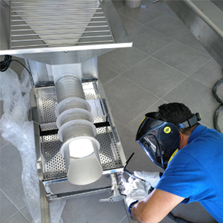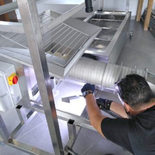 - Monoblocos feitos à medida, totalmente construídos em aço inox e com rodas.